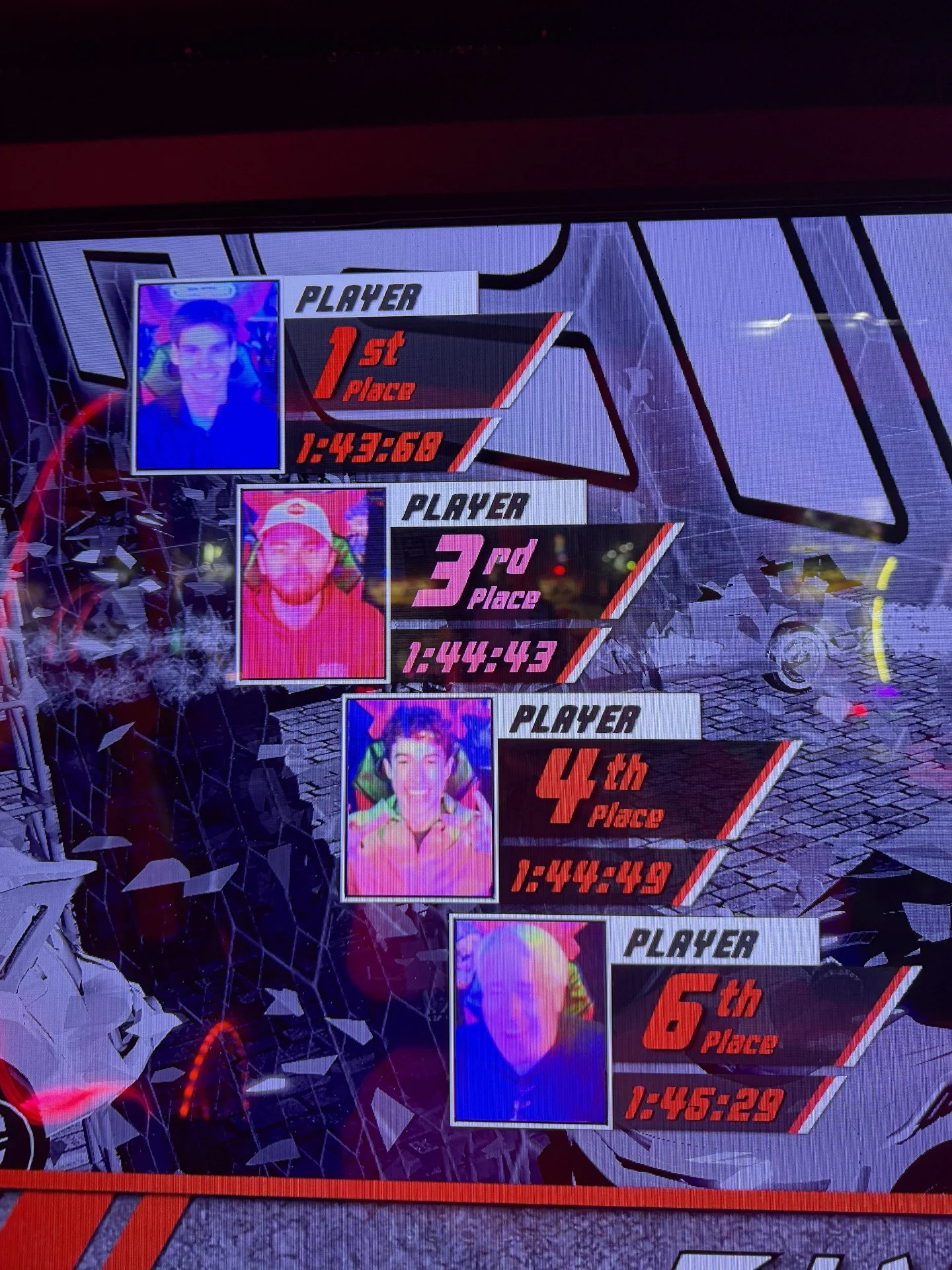 NASCAR racing results from Dave & Buster’s. Sorry Tim.